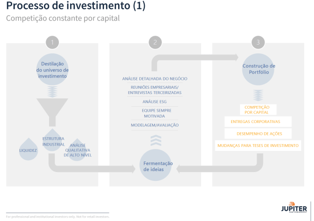Gestão: Contra a crença de que os retornos das ações são mais bem compreendidos no nível do negócio individual, fatores ambientais, sociais e de governança (ESG) são uma parte intrínseca do processo de pesquisa e investimento e a equipe considera que estes
