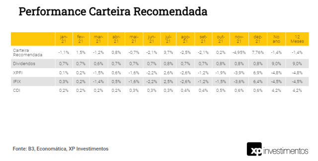 Desempenho da carteira vs. IFIX: A performance da Carteira Recomendada da XP será divulgada após o fechamento de mercado do último dia útil do