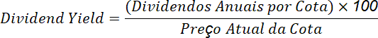 Por exemplo, se um fundo imobiliário paga R$ 12,00 em dividendos anuais por cota e o preço atual da cota é R$ 100,00, o DY seria:
