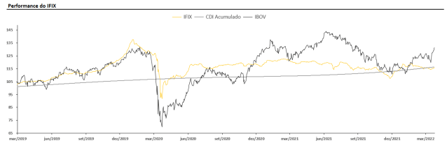 O IFIX, Índice de Fundos Imobiliários da B3 (B3SA3), terminou na terça-feira (22) em alta de 0,38%, aos 2.730,52 pontos.