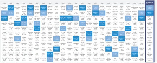 A volatilidade do mercado demonstra a importância da diversificação de portfólio. O investimento em REITs, possibilita acessar diversos setores do mercado imobiliário, cada qual com suas características e fatores de influência. Adicionalmente, algumas categorias de imóveis são acessíveis apenas para o investidor comum através de REITs, como hotéis, saúde, data centers, e depósitos pessoais.