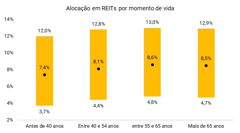 A recomendação de REITs por consultores financeiros tem se fortalecido. Segundo dados apresentados pela Nareit durante o evento, 78% dos consultores financeiros indicam, direta ou indiretamente, esses ativos como parte da estratégia imobiliária ao longo de todas as fases da vida dos clientes. Mesmo entre investidores em estágios iniciais da carreira, a alocação média já é de 3,7%, com tendência de crescimento à medida que a trajetória profissional e de vida evolui.