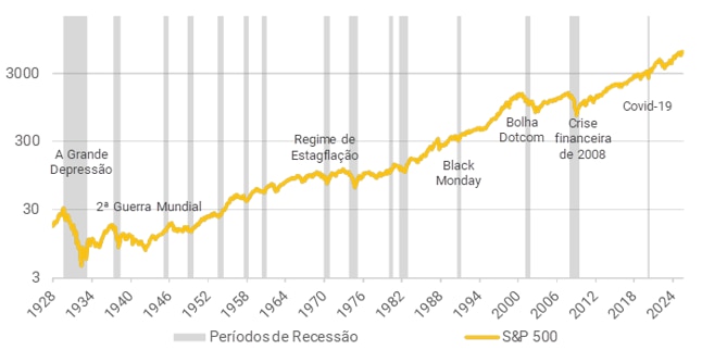 A propósito, uma crise financeira é um risco? Pense com calma. Aquilo que parece uma pergunta tola, pode adquirir outra conotação com um pouco mais de reflexão. Se associamos risco a incerteza, então para um investidor de longo prazo, uma crise não é um risco, ela passa a ser uma certeza. Qual a probabilidade de nos próximos 20 anos não enfrentarmos uma recessão ou crise de alguma forma? Provavelmente tende a zero. A história nos diz que ciclos longos sem algum tipo de perturbação não existem.