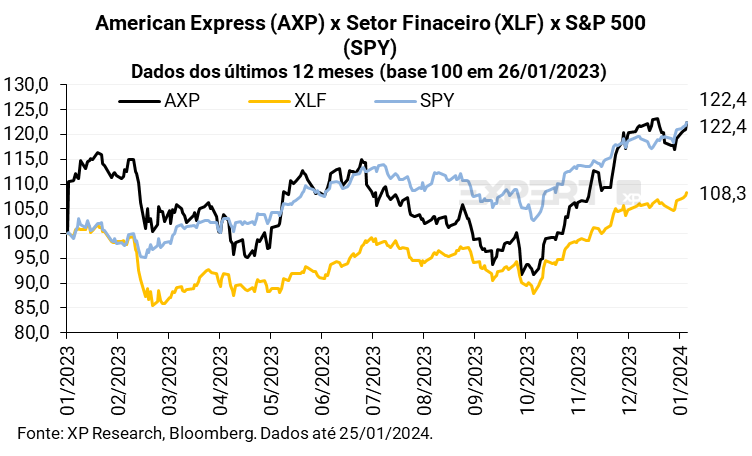 A American Express (Ticker: AXP) reportou resultados referentes ao quarto trimestre de 2023 na sexta-feira (26/01), antes da abertura do mercado. Os números vieram levemente negativos, com surpresas negativas na receita (US$ 15,8bi x 15,9bi esperada) e lucro por ação (US$ 2,62 x 2,65 esperado). O resultado foi impactado pela desvalorização do peso argentino, que causou uma perda de cerca de US$ 100 milhões no trimestre.