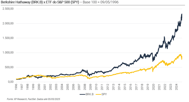 Além disso, a Berkshire teve desempenho superior ao S&P 500 em 34 dos 36 anos analisados, considerando tanto o retorno bruto quando o ajustado ao risco, sendo esse um grau de consistência raríssimo na história dos mercados.