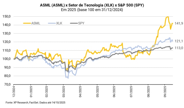 O mercado reagiu positivamente ao resultado, entendendo que apesar do tom de cautela há espaço para surpresas em 2026 e 2027, especialmente diante da retomada de encomendas à medida que incertezas quanto ao nível de tarifas (exceto para a China) se dissipam. A ASML, companhia que se situa na base da cadeia de AI, é sensível ao capex sinalizado por fabricantes de chips, pelos quais já forte apetite de investimentos.