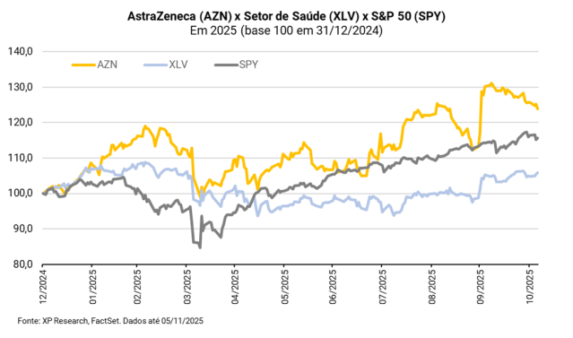 A AstraZeneca reportou resultados bons, com surpresas positivas na receita (+2,6%) e no lucro por ação (+3,4%). Os números foram impulsionados pelas fortes vendas em seus portfólios de oncologia e doenças cardiovasculares e metabólicas (CVRM). O resultado refletiu o crescimento em todas as regiões e áreas terapêuticas, com expansão de 9% A/A nos EUA e de 5% A/A na China.
