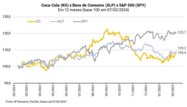 Coca-Cola reportou resultados bons, com surpresas positivas na receita (+7,8%) e no lucro por ação (+6,2%). Os números foram impulsionados pela demanda resiliente por refrigerantes, mesmo em cenário de inflação mais alta e maior repasse de preços no período.