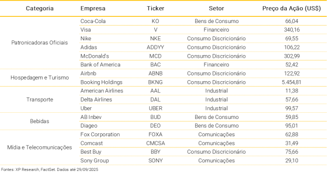 Abaixo, elencamos companhias expostas à Copa do Mundo da FIFA de 2026.
