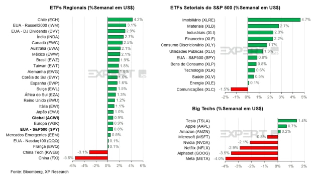 Waller, e Mester tiveram comunicações interpretadas mais como mais dovish, ou seja, mais brandas com o controle da inflação, destacando que a política monetária já se encontra em patamar suficientemente restritivo, e que os próximos passos dependerão das próximas divulgações de dados econômicos.