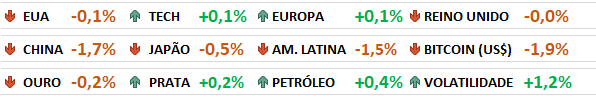 Mercados globais amanhecem sem movimentos expressivos (EUA -0,1% e Europa +0,1%), enquanto investidores aguardam reunião do Federal Reserve, que pode elucidar a data na qual as taxas de juros americanas deveriam voltar a subir (esperado para 2023). Ralí no petróleo faz a commodity bater os US$ 74/barril após dados indicarem redução dos estoques nos EUA muito acima do esperado.