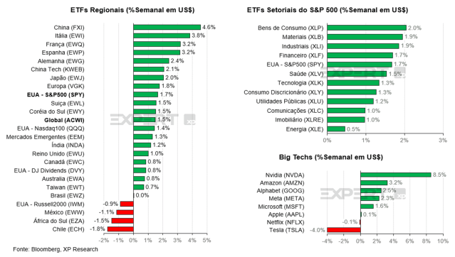 Ainda no início da semana, diversas autoridades do país, como o primeiro-ministro Li Qiang em pronunciamento no Conselho de Estado, se manifestaram defendendo a necessidade de mais estímulos para a economia chinesa para fomentar a confiança. Outros eventos importantes fora a presença do presidente Xi Jinping em uma reunião voltada para a realização de reformas e um encontro legislativo com o objetivo da criação de uma nova lei para o setor privado, endereçando temas como proteção de direitos de propriedade, recuperação de créditos e acesso a fatores produtivos.