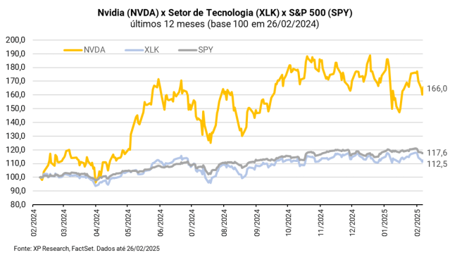 As ações de Nvidia enfrentaram volatilidade elevada no início do ano de 2025 após a notícia de que a startup chinesa Deekseep desenvolveu um chatbot bastante eficiente com chips mais antigos, o que gerou temores de uma potencial redução da necessidade de compras de chips como o Blackwell, da Nvidia.