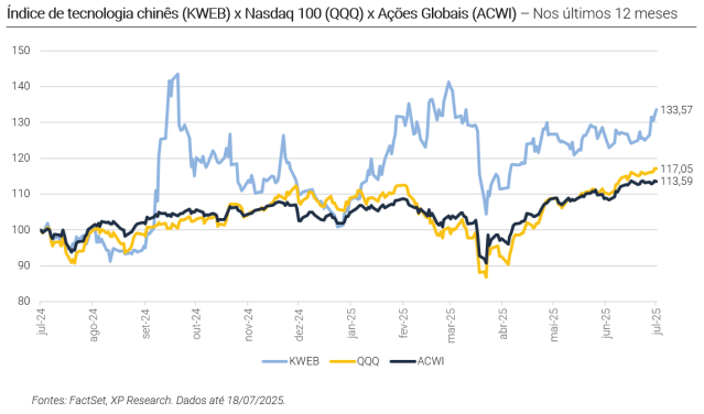 A liberação do chip veio em meio a sinais de trégua na guerra comercial entre EUA e China. Autoridades chinesas afirmaram que, diante do avanço das negociações com Washington, não há necessidade de retomar tensões. A melhora na retórica ocorre na semana em que o PIB chinês do 2T25 surpreendeu positivamente as expectativas.