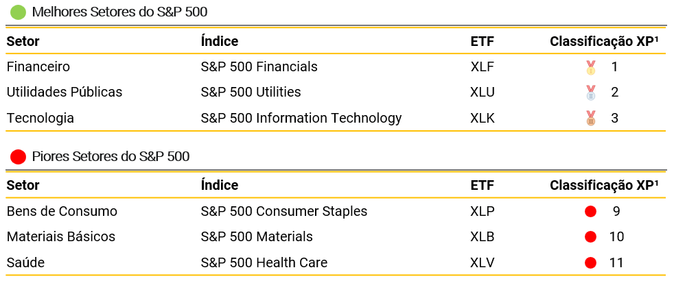 Considerando isso, reforçamos nossa perspectiva para melhores e piores setores da bolsa americana: