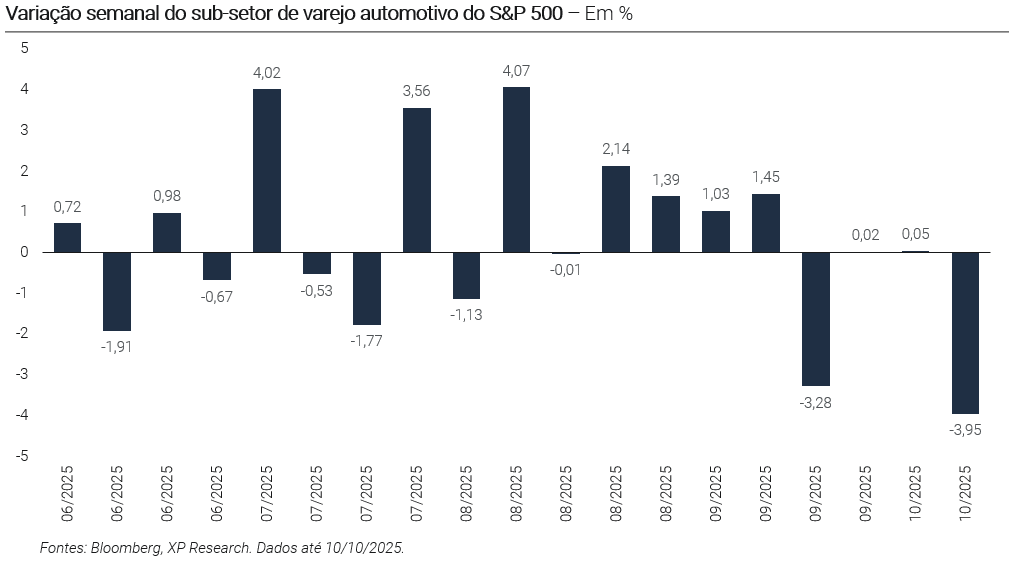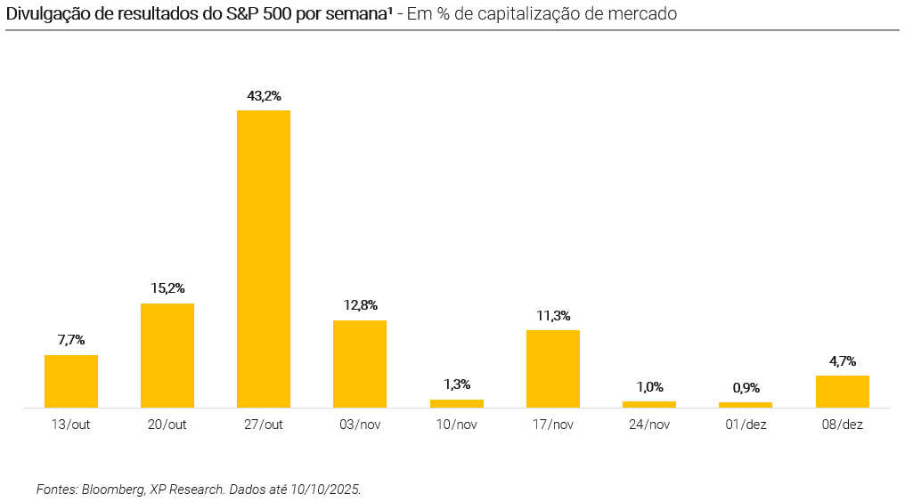 (iv) Pontos a serem monitorados: Com o período de shutdown do governo americano, vemos que a temporada de resultados será ainda mais determinante para a direção da política monetário americana. Com isso, apontamos atenção para fatores como margens de lucro e estado do consumidor.