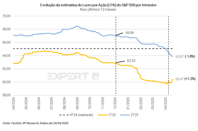 1º tri 2025: US$ 60,47 – Crescimento de +8,0%; +1,3% desde a publicação da nossa Prévia da temporada de resultados do 1T25 nos EUA: Incertezas devem pesar sobre guidances