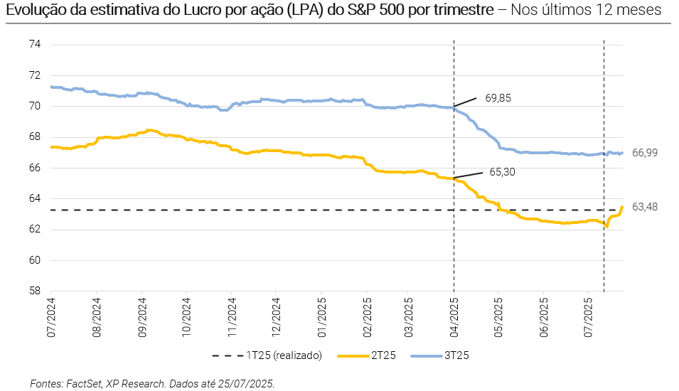 - 2T25: US$ 63,48 – Crescimento de +6,6% A/A; +0,8pp desde a publicação da nossa Prévia da temporada de resultados do 2T25 nos EUA: Desafiando o ceticismo
