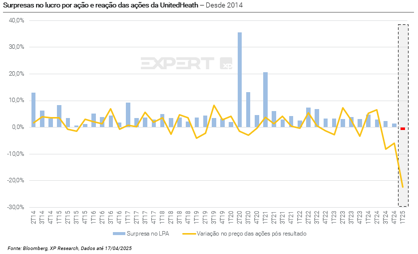 4. Setor de saúde: UnitedHealth divulga resultados que decepcionam o mercado – Após decepcionar nos lucro pela primeira vez em mais de 10 anos, ações caem mais de 22%