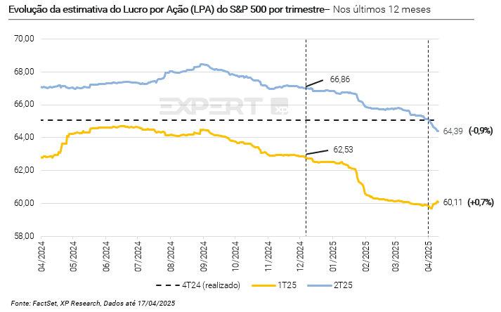 1º tri 2025: US$ 60,11 – Crescimento de +7,4%; +0,7% desde a publicação da nossa Prévia da temporada de resultados do 1T25 nos EUA: Incertezas devem pesar sobre guidances