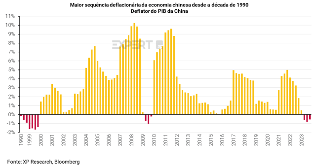 Já na quarta-feira, foram divulgados dados PIB: a China teve crescimento de 5,2% em 2023, levemente abaixo das expectativas de mercado (5,3%) e acima da meta do governo (5,0%). A frustração, que provocou queda de 4,6% no FXI, ETF representativo das maiores empresas chinesas, veio da falta de novos anúncios de estímulos para a economia chinesa.