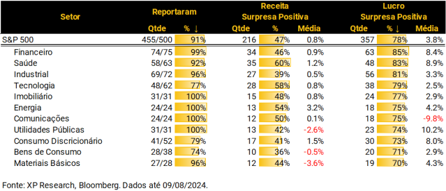 1. Temporada de Resultados: Segurando (ainda mais) o entusiasmo – 91% das empresas do S&P 500 já revelaram seus balanços do 2º trimestre de 2024