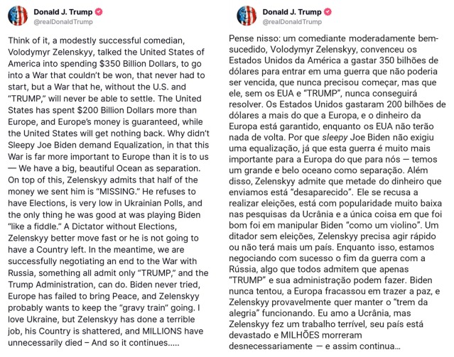 1. Trump: Negociações sobre fim de guerra começa sem Ucrânia