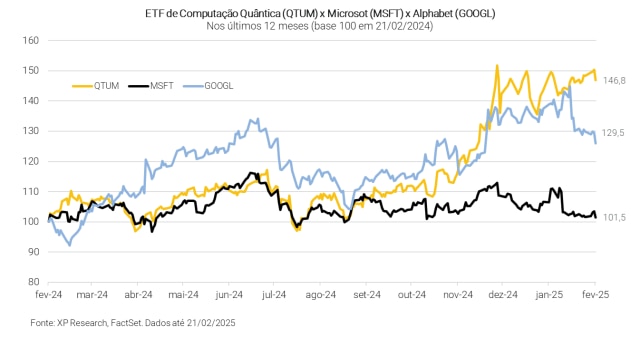 Contudo, mesmo o Majorana 1 representando um avanço notável desse tipo de tecnologia, o mercado continua cético com a ideia de que a computação quântica trará uma revolução tecnológica no curto ou médio prazo como a dos chips para inteligência artificial. No fim da semana, a Microsoft acumulou leve alta de +0,2%, e o QTUM, ETF de computação quântica, caiu -0,9%. Outras ações do setor, como a Rigetti Computing, também caíram na semana mesmo com as notícias divulgadas pela Microsoft.