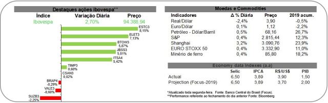 - Apesar da lenta recuperação do mercado de trabalho e das dificuldades relacionadas à tramitação da reforma da previdência terem impulsionado um fraco desemprenho da atividade no primeiro trimestre de 2019, as expectativas são de continuidade do processo de alta do varejo, ainda que de forma lenta.