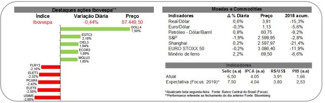 - O presidente jurou compromisso absoluto com a disciplina fiscal e financeira. O orçamento prevê um crescimento do PIB de 2% em 2019, ligeiramente acima das previsões do mercado de 1,8-1,9%;