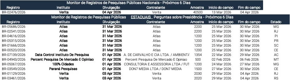 Monitor de pesquisas: Pesquisa Veritá pode ser divulgada a partir de sábado.