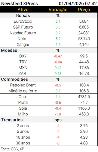 Este material foi elaborado pela XP Investimentos CCTVM S/A (“XP Investimentos” ou “Companhia”) e não deve ser considerado um relatório de análise para os fins na Resolução CVM 20/2021. As opiniões, projeções e estimativas aqui contidas são meramente indicativas da opinião do autor na data da divulgação do documento sendo obtidas de fontes públicas consideradas confiáveis e estando sujeitas a mudanças a qualquer momento sem necessidade de aviso ou comunicado prévio. A Companhia não apoia ou se opõe contra qualquer partido político, campanha política, candidatos ou funcionários públicos. Sendo assim, XP Investimentos não está autorizada a doar fundos, propriedades ou quaisquer recursos para partidos ou candidatos políticos e tampouco fará reembolsos para acionistas, diretores, executivos e empregados com relação a contribuições ou gastos neste sentido. XP Investimentos e suas afiliadas, controladoras, acionistas, diretores, executivos e empregados não serão responsáveis (individualmente e/ou conjuntamente) por decisões de investimentos que venham a ser tomadas com base nas informações divulgadas e se exime de qualquer responsabilidade por quaisquer prejuízos, diretos ou indiretos, que venham a decorrer da utilização deste material ou seu conteúdo. Os desempenhos anteriores não são necessariamente indicativos de resultados futuros. Este material não leva em consideração os objetivos de investimento, situação financeira ou necessidades específicas de qualquer investidor. Os investidores devem obter orientação financeira independente, com base em suas características pessoais, antes de tomar uma decisão de investimento. Este relatório é destinado à circulação exclusiva para a rede de relacionamento da XP Investimentos, incluindo agentes autônomos da XP e clientes da XP, podendo também ser divulgado no site da XP. Fica proibida sua reprodução ou redistribuição para qualquer pessoa, no todo ou em parte, qualquer que seja o propósito, sem o prévio consentimento expresso da XP Investimentos.