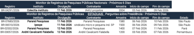 Monitor de pesquisas: Pesquisa Colectta, com divulgação permitida a partir de ontem, ainda não foi publicada.
