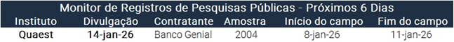 Monitor de Pesquisas: Boas Ideias: Lula lidera em cenários de 1T; em 2T, empata com Tarcísio e vence Flávio e Michelle (app: https://bit.ly/4qpvIXu e desktop: https://tinyurl.com/yjud5xcu)