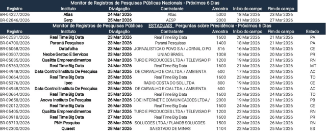 Monitor de pesquisas: Pesquisas Atlas e Gerp podem ser divulgadas a partir de terça e quarta-feira, respectivamente.