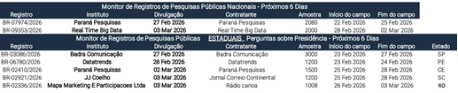 Monitor de pesquisas: Atlas: Avaliação e aprovação do governo recuam em fevereiro (app: https://bit.ly/4qW0K8G | desktop: https://tinyurl.com/23b8rf8b)