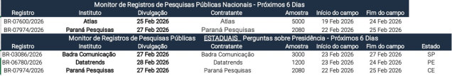 Monitor de pesquisas: Levantamento nacional conduzido pelo Paraná Pesquisas pode ser divulgado  a partir de sexta.