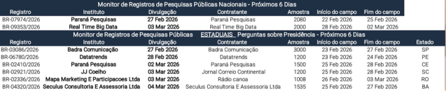 Monitor de pesquisas: Pesquisa da Real Time Big Data pode ser divulgada a partir de terça-feira.