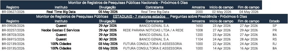 Monitor de pesquisas: Pesquisa Real Time Big Data pode ser divulgada a partir da próxima terça.
