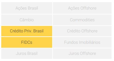 • Para fins de verificação da adequação do perfil do investidor aos serviços e produtos de investimento oferecidos pela XP Investimentos, utilizamos a metodologia de adequação dos produtos por portfólio, nos termos das Regras e Procedimentos ANBIMA de Suitability nº 01 e do Código ANBIMA de Distribuição de Produtos de Investimento. Essa metodologia consiste em atribuir uma pontuação máxima de risco para cada perfil de investidor (conservador, moderado e agressivo), bem como uma pontuação de risco para cada um dos produtos oferecidos pela XP Investimentos, de modo que todos os clientes possam ter acesso a todos os produtos, desde que dentro das quantidades e limites da pontuação de risco definidas para o seu perfil. Antes de aplicar nos produtos e/ou contratar os serviços objeto deste material, é importante que você verifique se a sua pontuação de risco atual comporta a aplicação nos produtos e/ou a contratação dos serviços em questão, bem como se há limitações de volume, concentração e/ou quantidade para a aplicação desejada. Você pode consultar essas informações diretamente no momento da transmissão da sua ordem ou, ainda, consultando o risco geral da sua carteira na tela de carteira (Visão Risco). Caso a sua pontuação de risco atual não comporte a aplicação/contratação pretendida, ou caso existam limitações em relação à quantidade e/ou volume financeiro para a referida aplicação/contratação, isto significa que, com base na composição atual da sua carteira, esta aplicação/contratação não está adequada ao seu perfil. Em caso de dúvidas sobre o processo de adequação dos produtos oferecidos pela XP Investimentos ao seu perfil de investidor, consulte o FAQ. As condições de mercado, mudanças climáticas e o cenário macroeconômico podem afetar o desempenho do investimento.