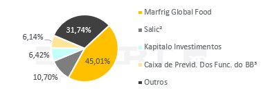 Em julho de 2023, a Companhia realizou follow on, com a entrada do acionista Salic, um fundo de investimento saudita que controla 31% da Minerva. Marcos Molina acompanhou o aporte e manteve sua participação de 33,27% na BRF por meio de sua empresa, a Marfrig Global Foods (“Controladores”). Ao final de 2023, a participação dos Controladores superou 50%, e em 2025 foi formalizada a intenção de fusão entre a Marfrig e a BRF, criando a BRF. A expectativa é que o fim da transação ocorra no 3T25.