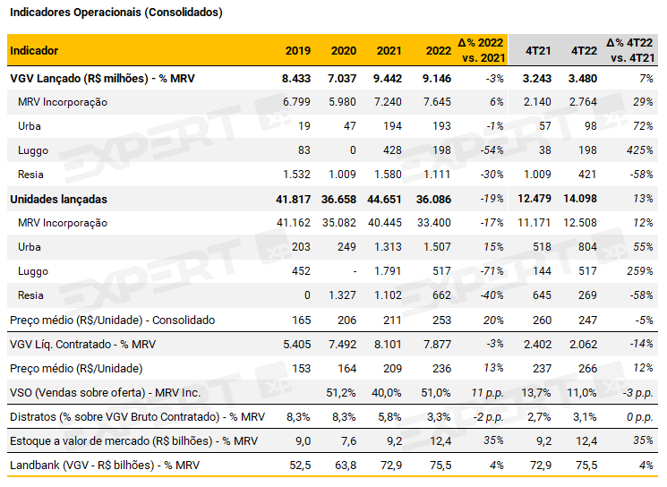 A MRV & CO é focada em moradias populares. Apesar de o principal segmento de atuação ser atrelado ao programa Minha Casa Minha Vida, a empresa também possui exposição no segmento de média renda e conta com as subsidiárias Urba, Luggo e Resia (construtora que atende as famílias de classe média nos EUA), que ampliam seu escopo para além da incorporação.