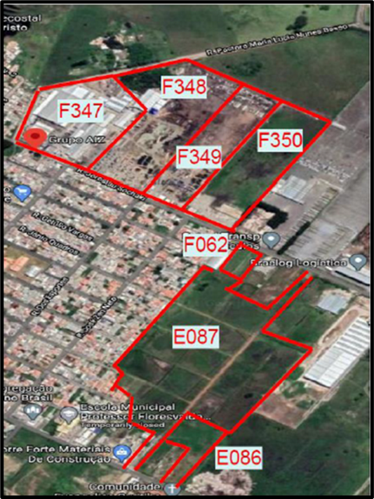O imóvel “Galpão” é composto pelos lotes F347, F348, F349 e F350. Vide foto abaixo.