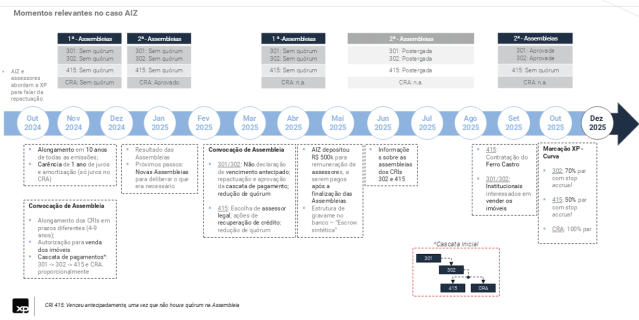 - Devido ao vencimento antecipado do CRA AIZ, esta emissão encontra-se em trâmite de nova assembleia, considerando que possui uma cláusula de cross-default (inadimplemento cruzado) não automática.