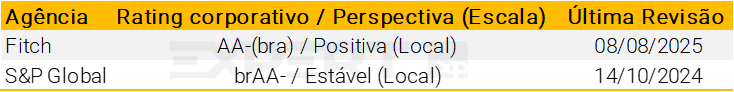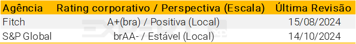 Clique aqui para acessar o relatório da Fitch Ratings e da S&P Global.