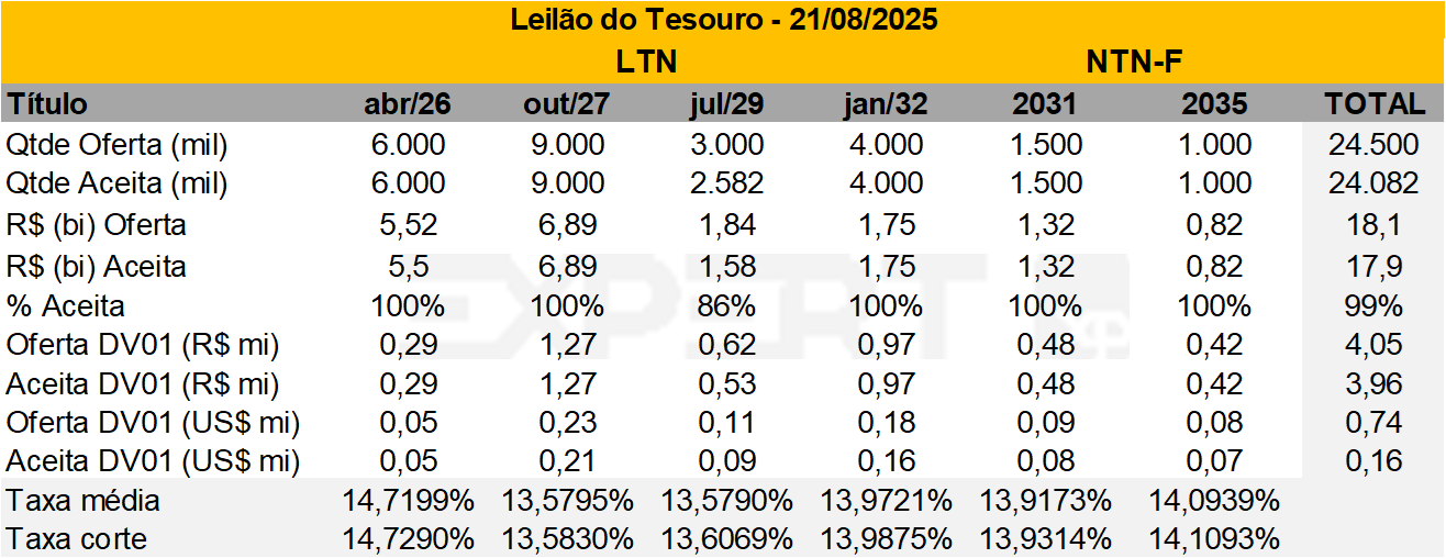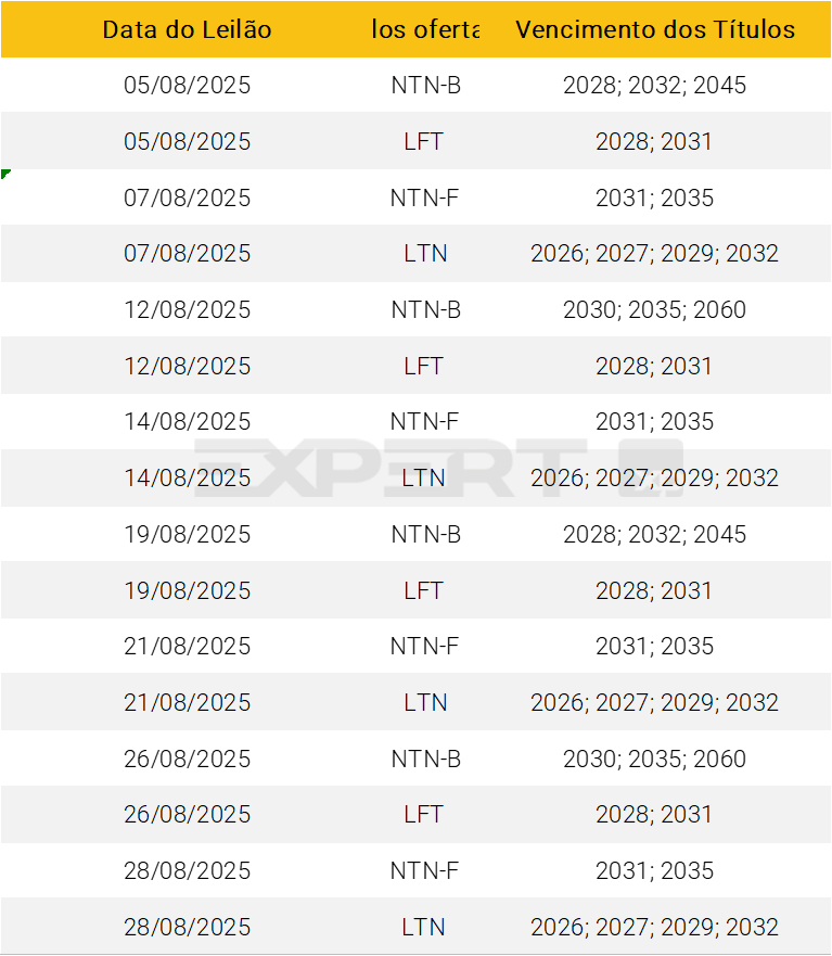 De Olho nos Leilões do Tesouro | Agosto 2025; Leilão de prefixados acima da média do PAF (28/08)
