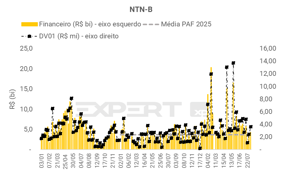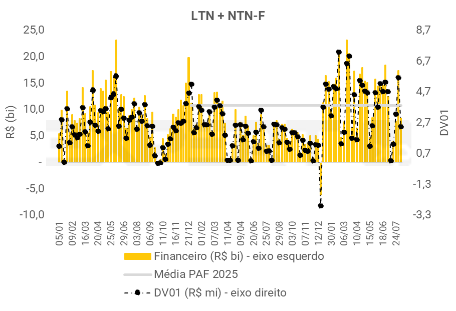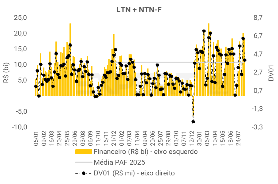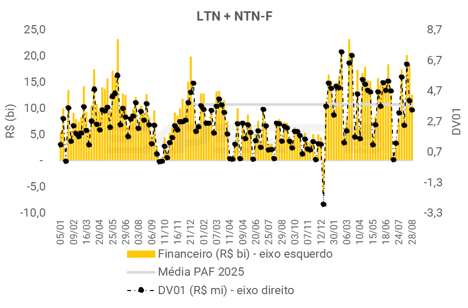 • O leilão de títulos prefixados teve financeiro superior à média do PAF, e redução no DV01.