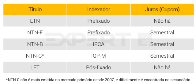 Existem cinco tipos diferentes de títulos públicos federais (TPF) no Brasil: