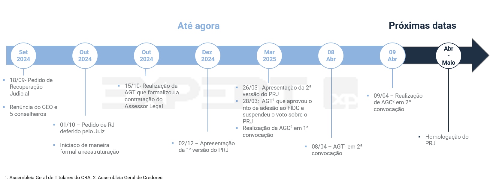 O Conselho de Administração já convocou Assembleia Geral Extraordinária (AGE) para deliberar sobre a ratificação da autorização do pedido de RJ, além de instalação de Conselho Fiscal e eleição de seus membros.