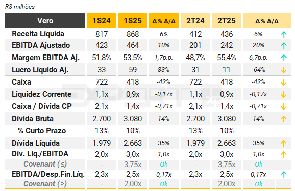 - Em 2 de julho de 2025, a Vero contratou um empréstimo de R$ 40 milhões junto ao BNDES, com prazo de 60 meses e carência de 12 meses, a uma taxa de TR + 2,70% a.a.